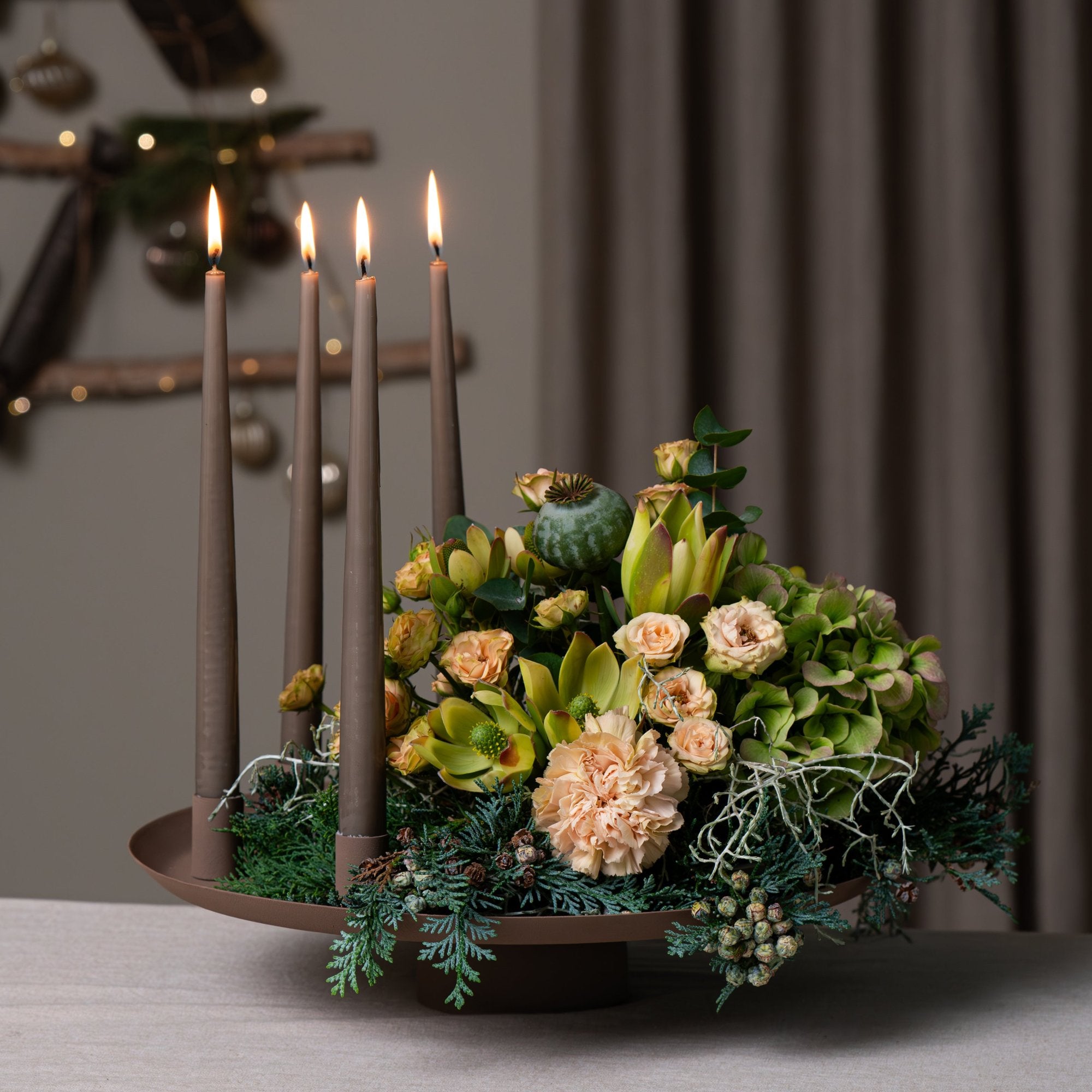 Julekugler, kogler og levende lys bringer adventshyggen ind i hjemmet og minder os om vinterens skønhed. Der er noget meditativt i at skabe sin adventskrans – som om hvert lille trin bringer os tættere på julen.