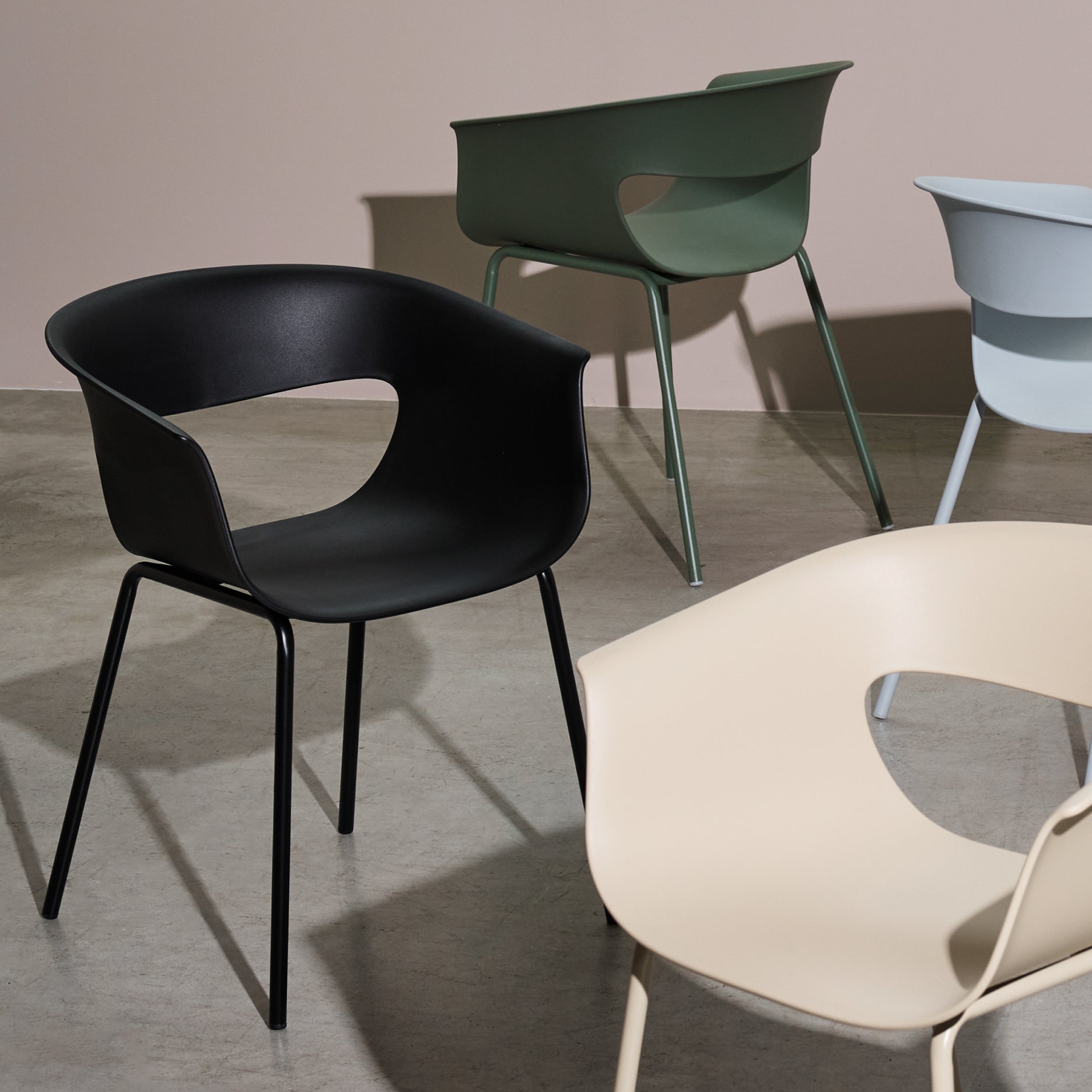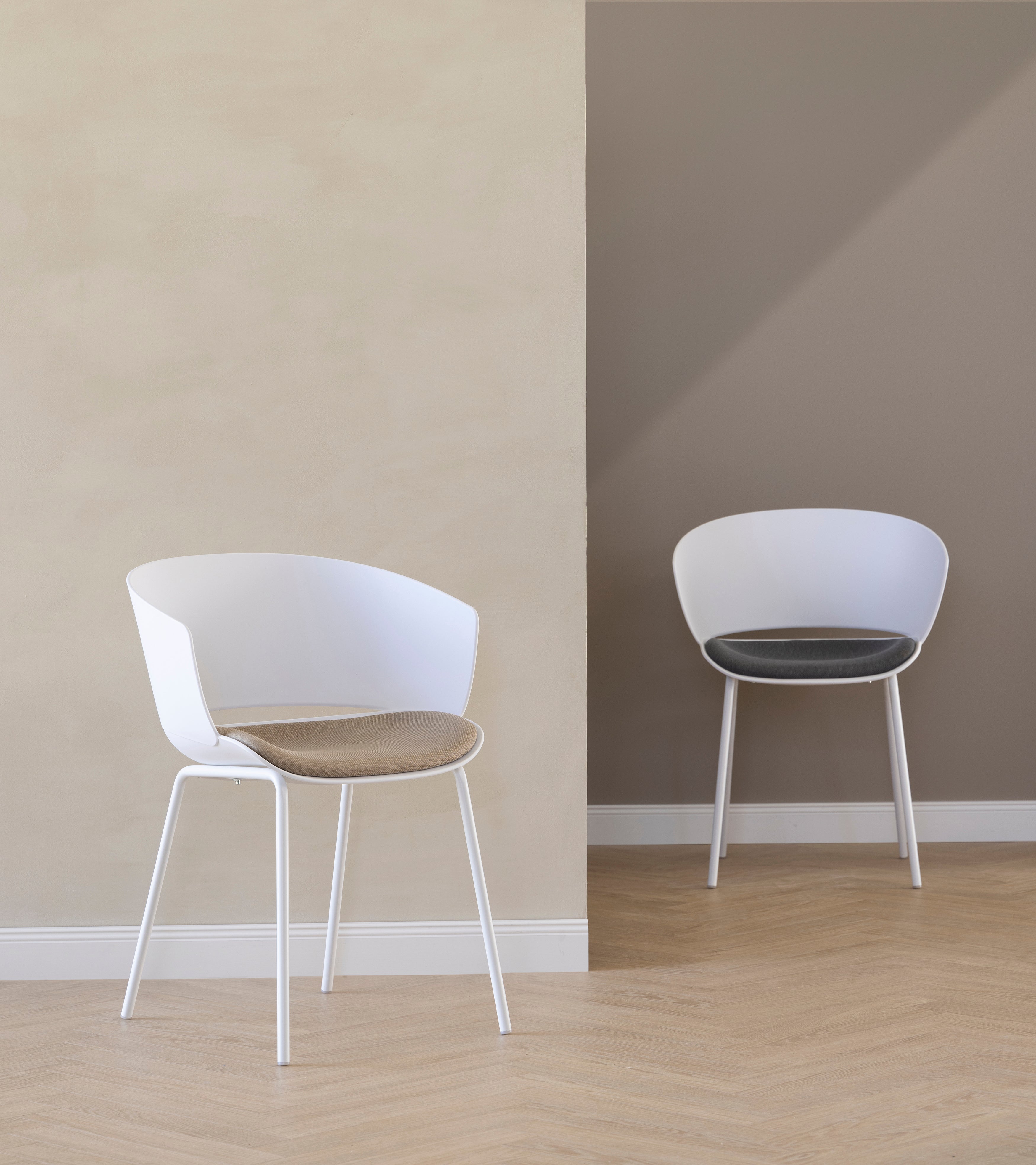 Med en stol i plast har du et møbel, som både er moderne i udtrykket, men også nem at vedligeholde, da overfladen er vand- og smudsafvisende. Det er muligt at lege med former og farver og det er let at f lytte rundt på møbler støbt i plast. Tilføj en blød siddehynde for at øge komforten.