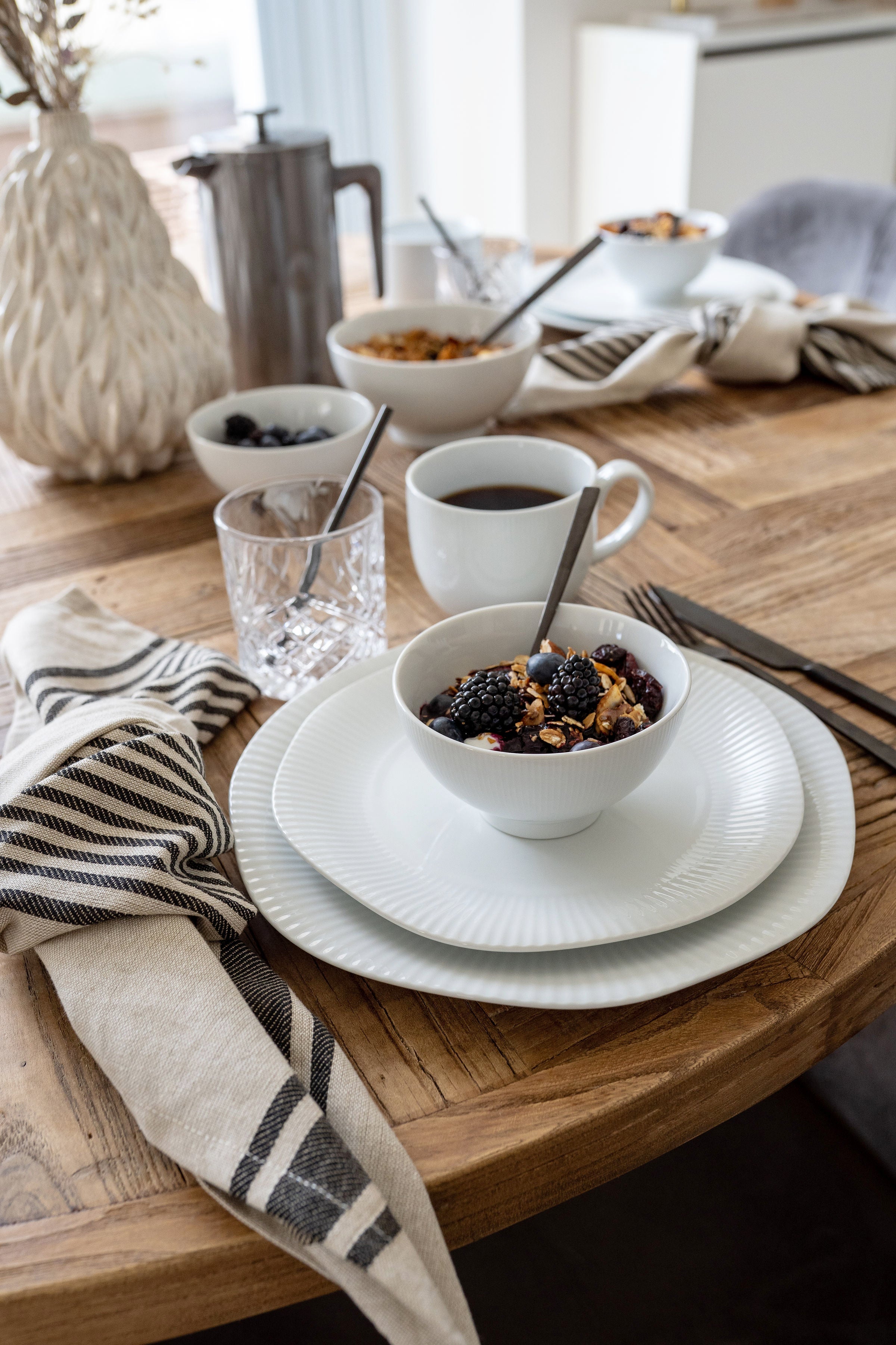 Gør dine morgener lidt mere luksuriøse med blødt, nyt sengetøj og velduftende krydderier til morgenbordet. Vores tekstiler og køkkenprodukter er nøje udvalgt til både funktion og stemning – så du kan få en god start på dagen.