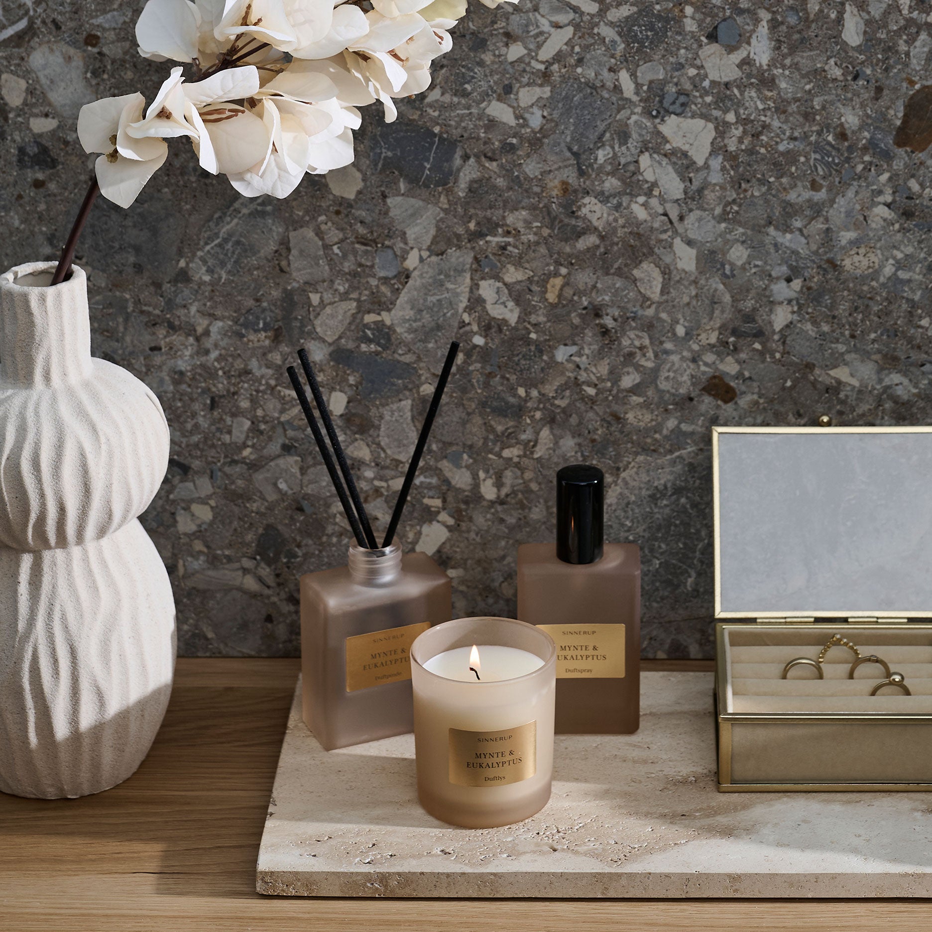 Tip! En smuk vase, elegante smykker, et luksuriøst duftsæt eller en dekorativ lampe er altid et sikkert valg.