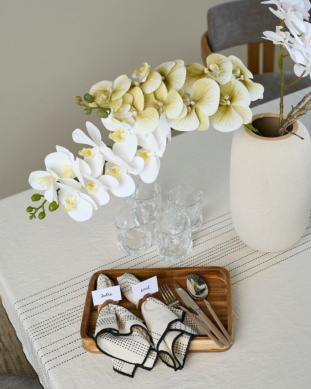 De bløde, organiske linjer og naturlige farver skaber en indbydende atmosfære, mens stellets funktionalitet gør det perfekt til både hverdag og festlige lejligheder. Med Magic-stellet får du ikke kun tidløst design, men også et elegant element, der gør hvert måltid til en stilfuld oplevelse.