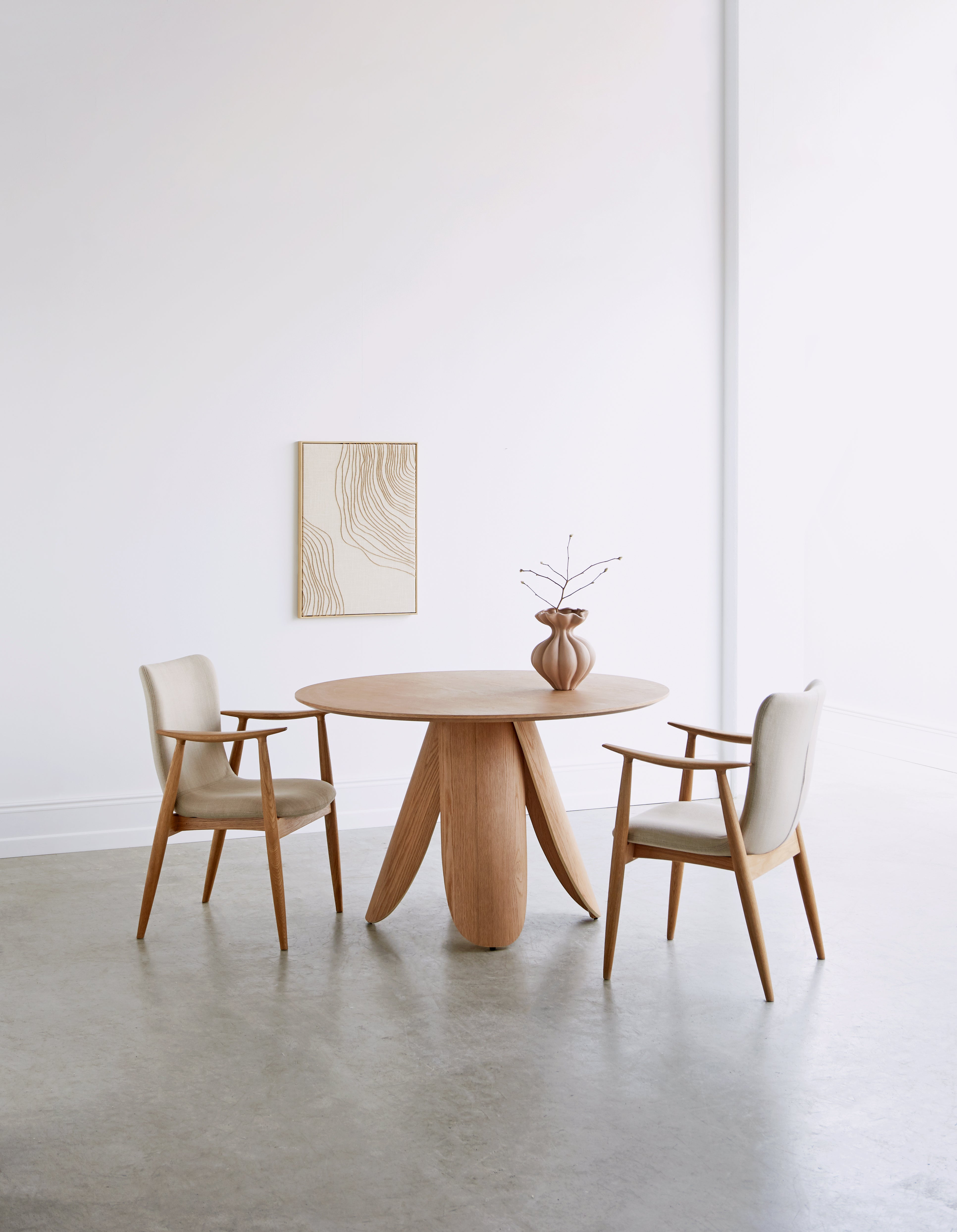 Sprout er arkitekttegnet og skabt med blik for både funktion og følelse. Det runde design fremmer samtale og samvær, og skaber en naturlig midte i hjemmet – uanset om det bruges til morgenkaffe, børnetegninger eller middagsselskaber.