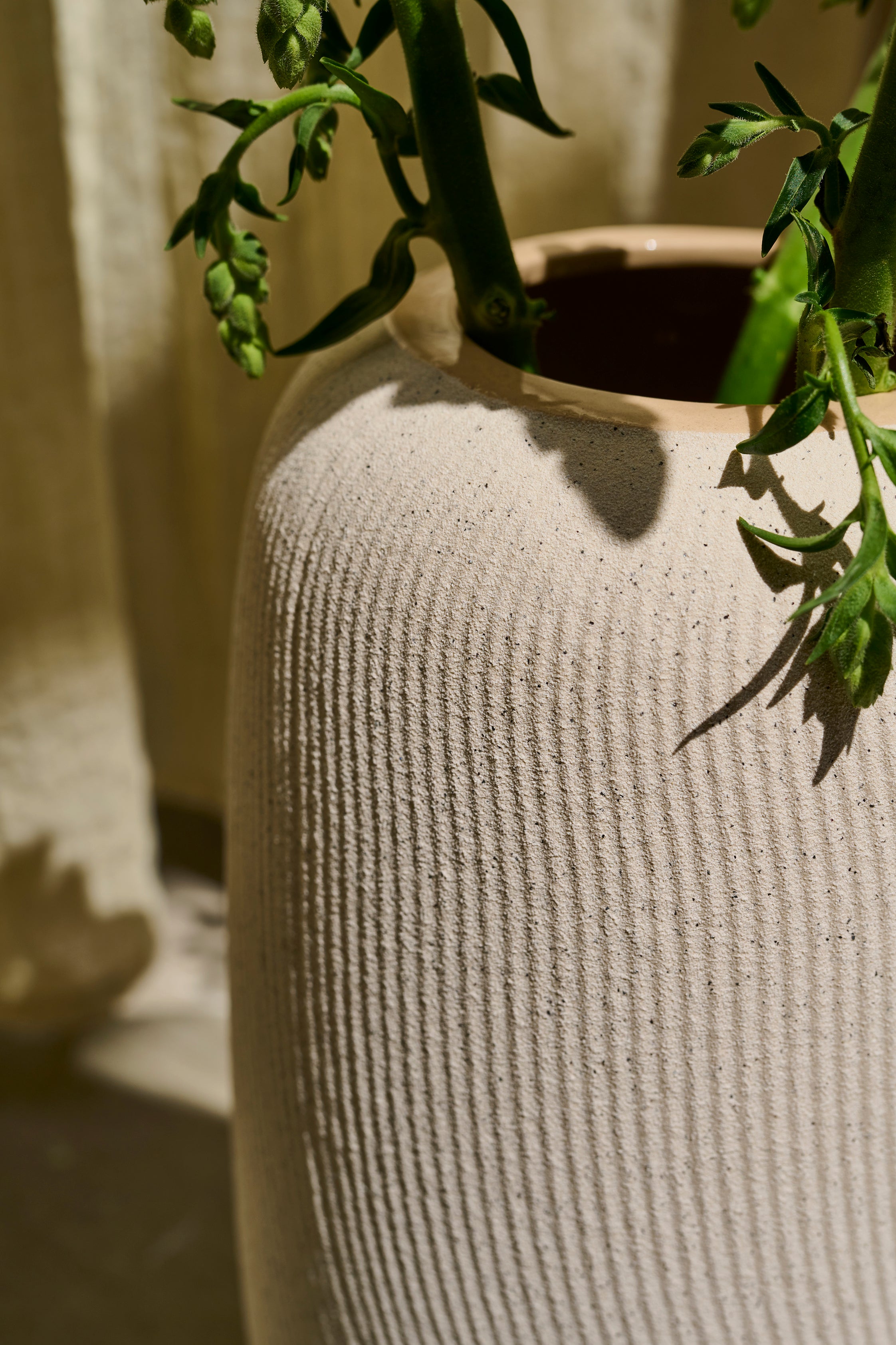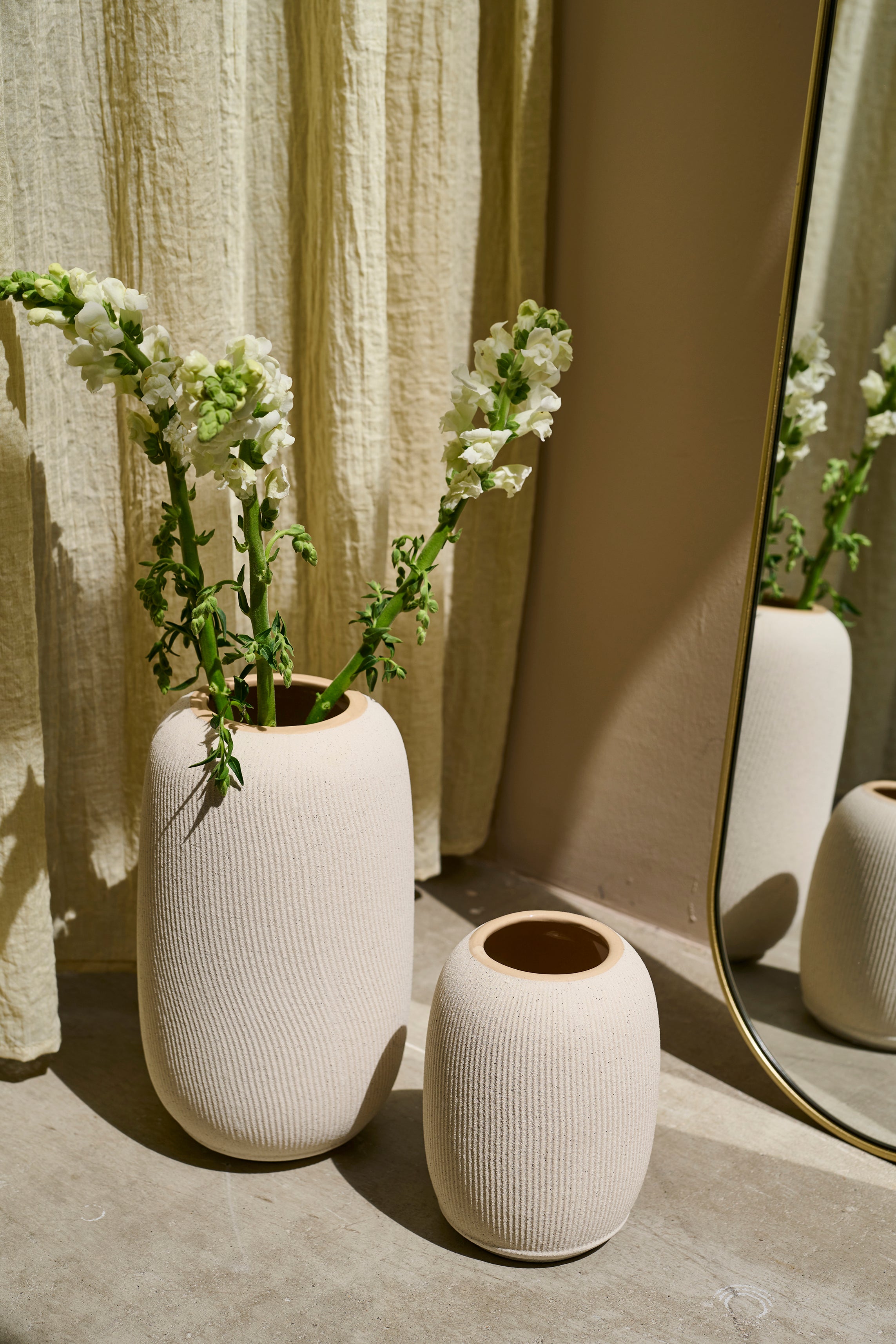Vica-serien består af urtepotter, vaser, tandkrus, sæbedispensere og lysestager i klassisk design. Med organiske, bølgende mønstre bringer Vica wellness og elegance ind i dit hjem. Tilføj et strejf af tidløs skønhed til din indretning.