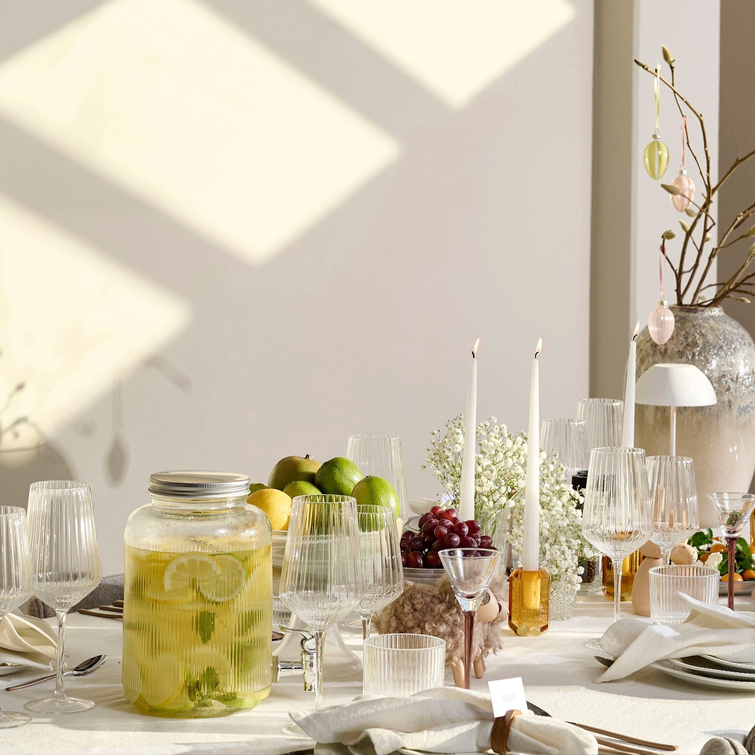 Et smukt dækket påskebord kan indeholde en frisk buket i en elegant vase. En tidløs vase er en investering, der både forskønner festlige påskesammenkomster og hverdagsøjeblikke. Brug den som et naturligt midtpunkt med friske blomster eller yndefulde grene, pyntet eller med påskeæg – en elsket tradition, der nydes år efter år.